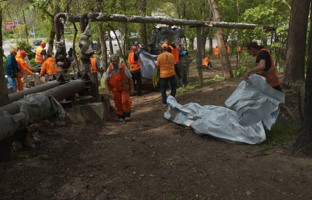 Также проводятся работы по покосу травы, обрезке деревьев, уборке листьев и уходу за цветниками и газонами. При необходимости предприятие участвует в городских субботниках и ликвидирует стихийные свалки.