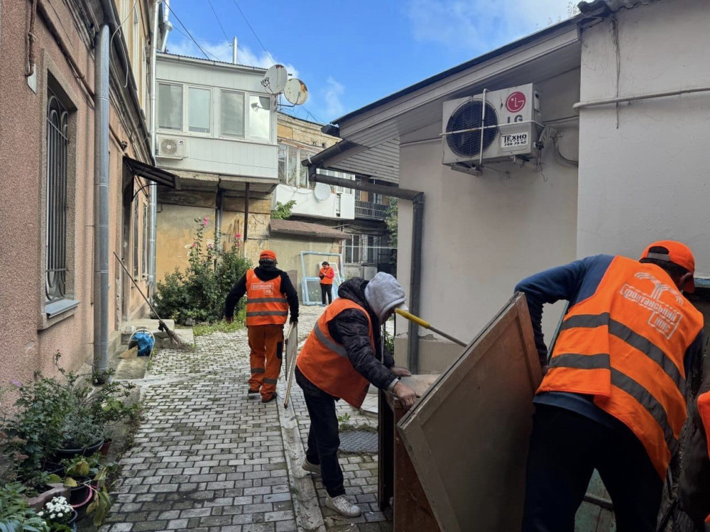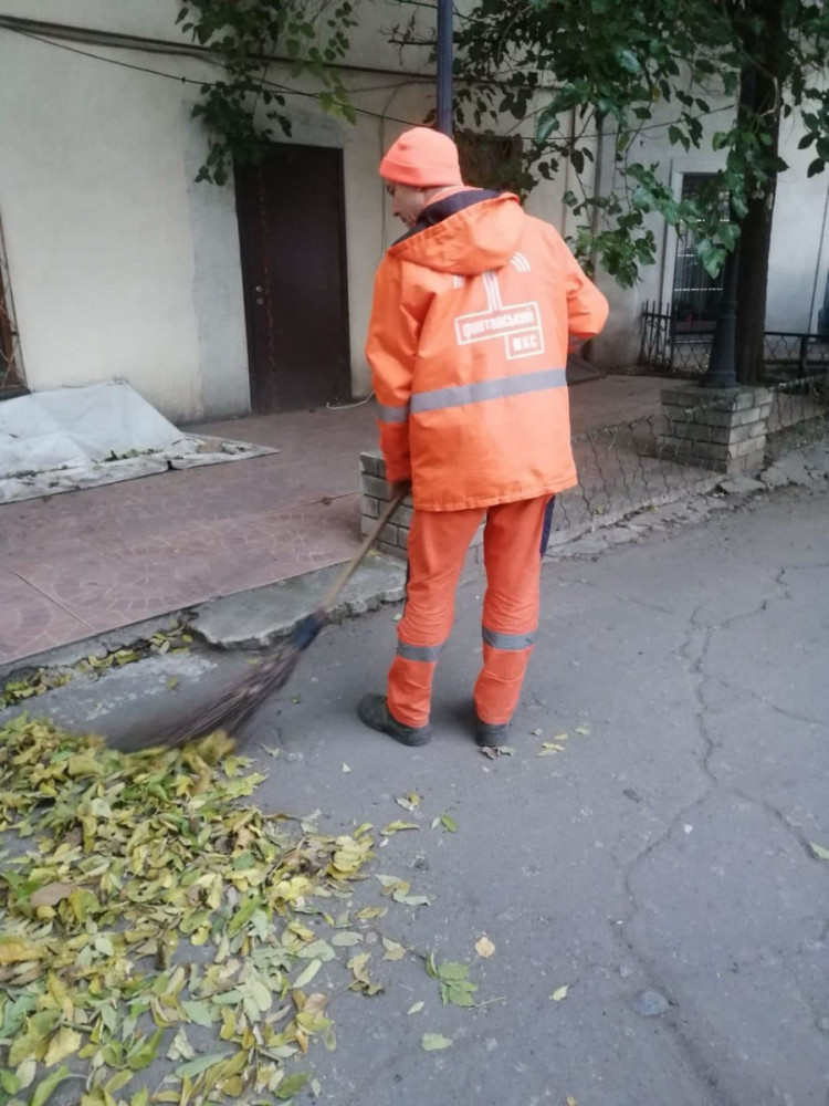 Уборщики предприятия выполняют работы по уборке дважды в день, включая подметание дворов, тротуаров, очистку мусорных урн и мытье баков.
