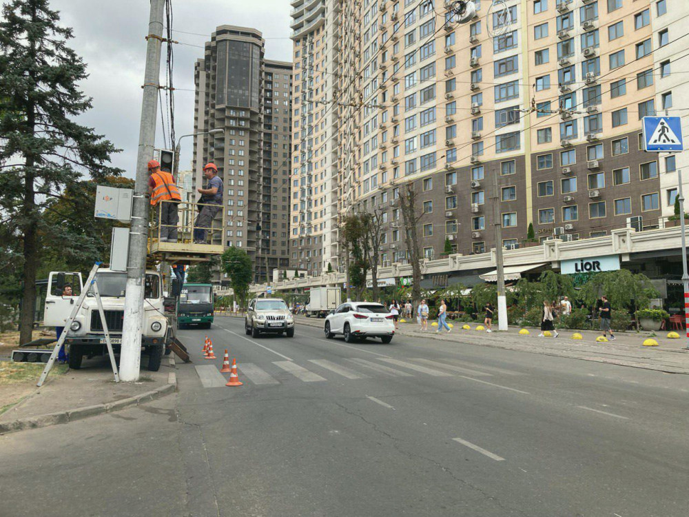 В Одессе завершена установка нового светофорного объекта на перекрестке улиц Генуезская и Курортный переулок.