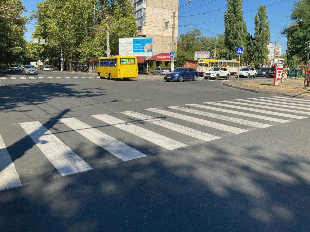 Специалисты Коммунального учреждения «СМЕП» активно занимаются обновлением дорожной разметки на пешеходных переходах в районе учебных заведений Одессы.