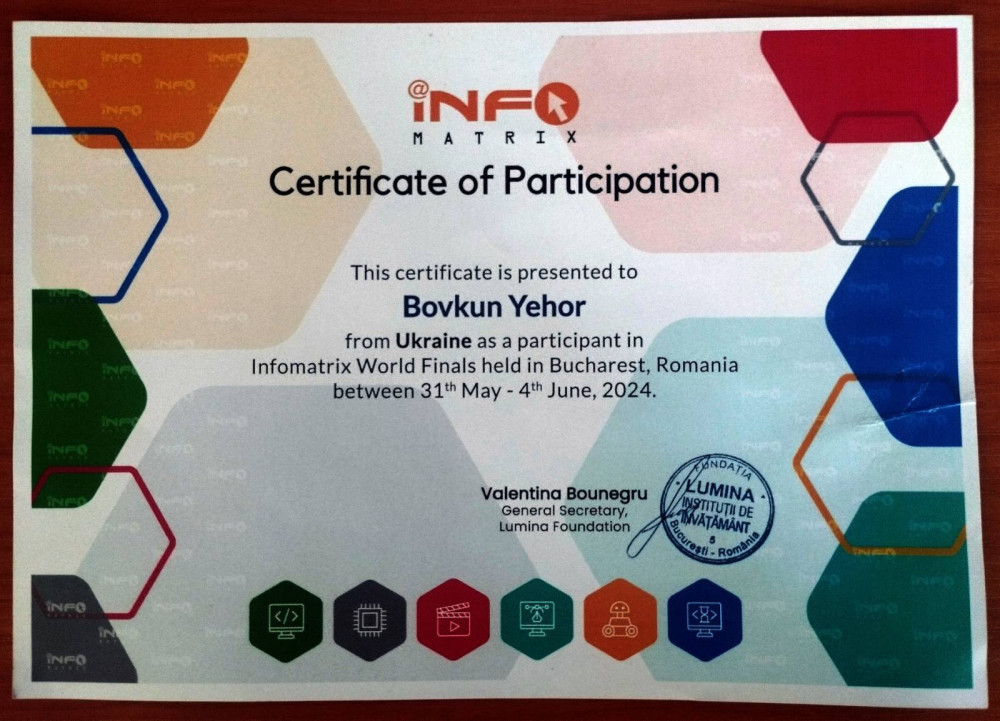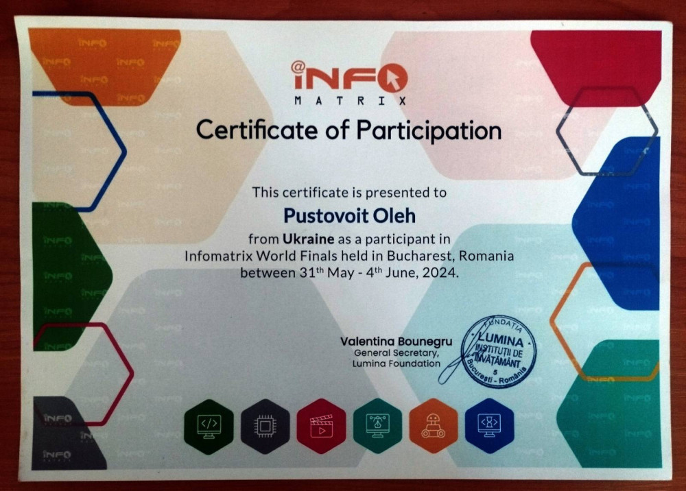 С 31 мая по 3 июня 2024 года в Бухаресте (Румыния) прошел международный финал конкурса компьютерных проектов INFOMATRIX-2024.