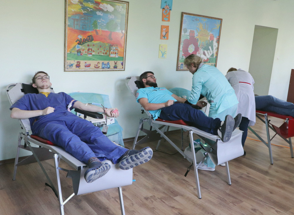 1. Собрать группу из 25-50 человек, желающих сдать кровь, и проверить, что у них нет абсолютных противопоказаний или временных ограничений на сдачу крови.